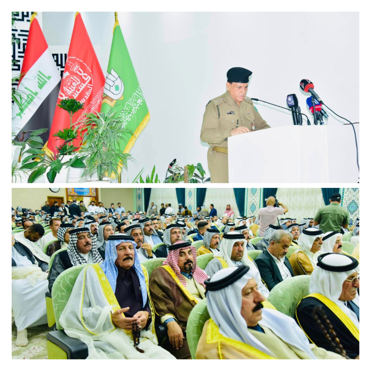 نيابة عن وزير الداخلية "عبد الأمير ألشمري" ، حضر السيد وكيل وزارة الداخلية لشؤون الشرطة الفريق "عادل عباس الخالدي" الموتمر العشائري الذي عقد ، اليوم السبت ، في صحن الإمام الحسين ( ع ) بمناسبة الذكرى الـ 104 لقيام ثورة العشرين ، يرافقه مدير دائرة العلاقات والإعلام في الوزارة اللواء خالد المحنا ومدير شؤون العشائر وعدداً من القادة بحضور عدد منّ نواب البرلمان العراقي ورؤساء القبائل والعشائر والوجهاء ورجال الدين وممثل عن الحوزة العلمية وبعض الشخصيات الوطنية.